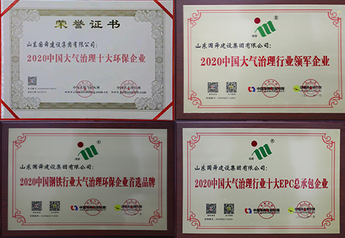 2021年1月,国舜集团荣获“2020中国大气治理行业环保企业首选品牌”“2020年中国大气治理行业十大EPC总承包企业”“2020年中国大气治理行业领军企业”“2020年中国大气治理行业十大环保企业”等荣誉称号