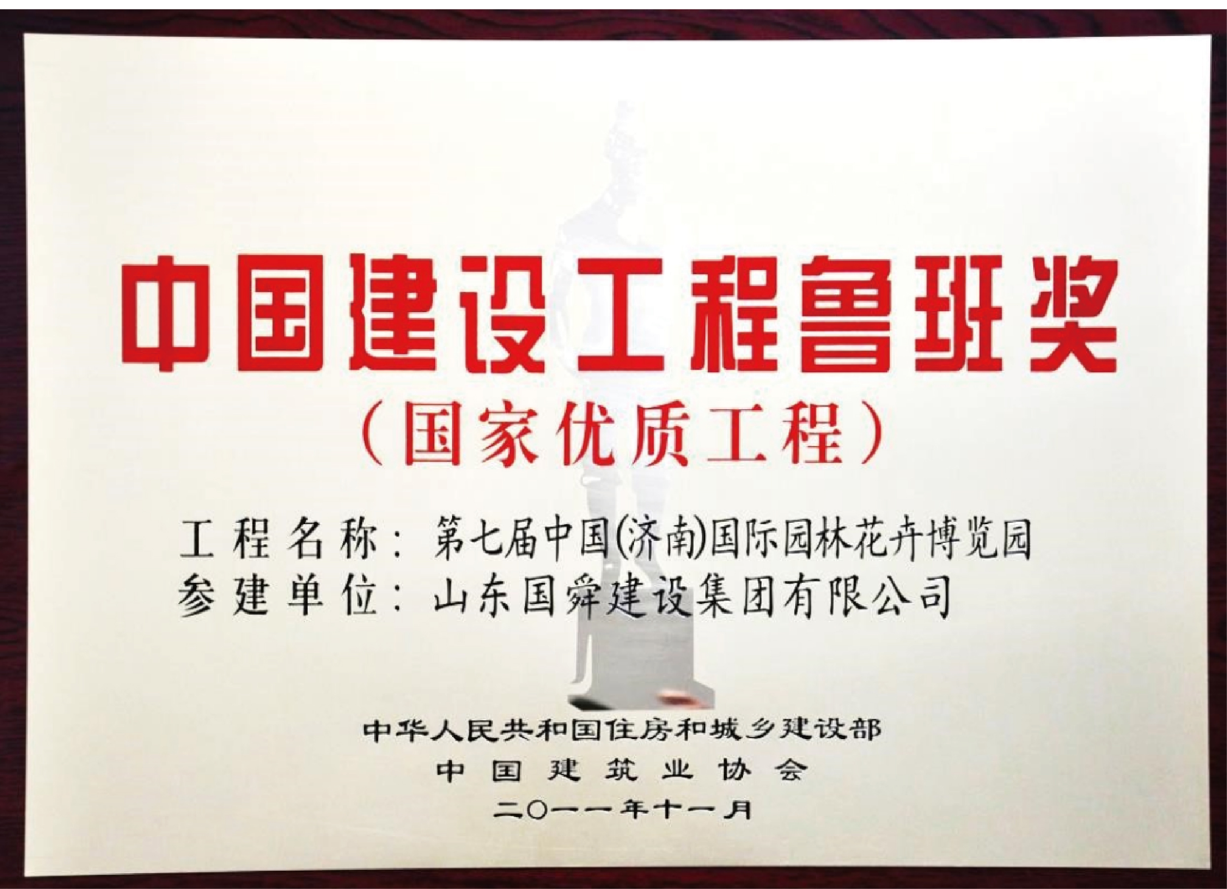 2011年11月,国舜集团承建的园博园主展馆等系列工程荣获“中国建筑工程鲁班奖”