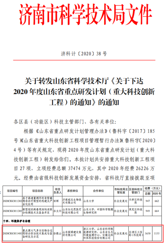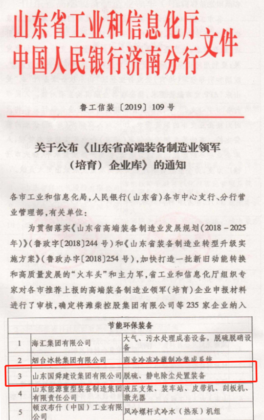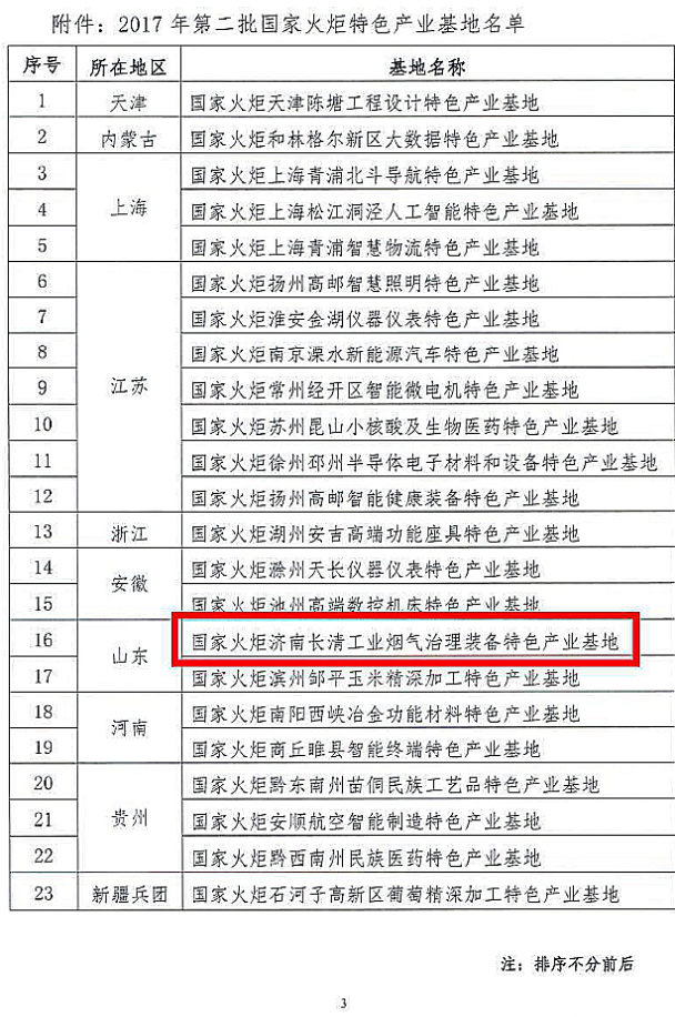 国家火炬济南长清工业烟气治理装备特色产业基地(龙头企业)