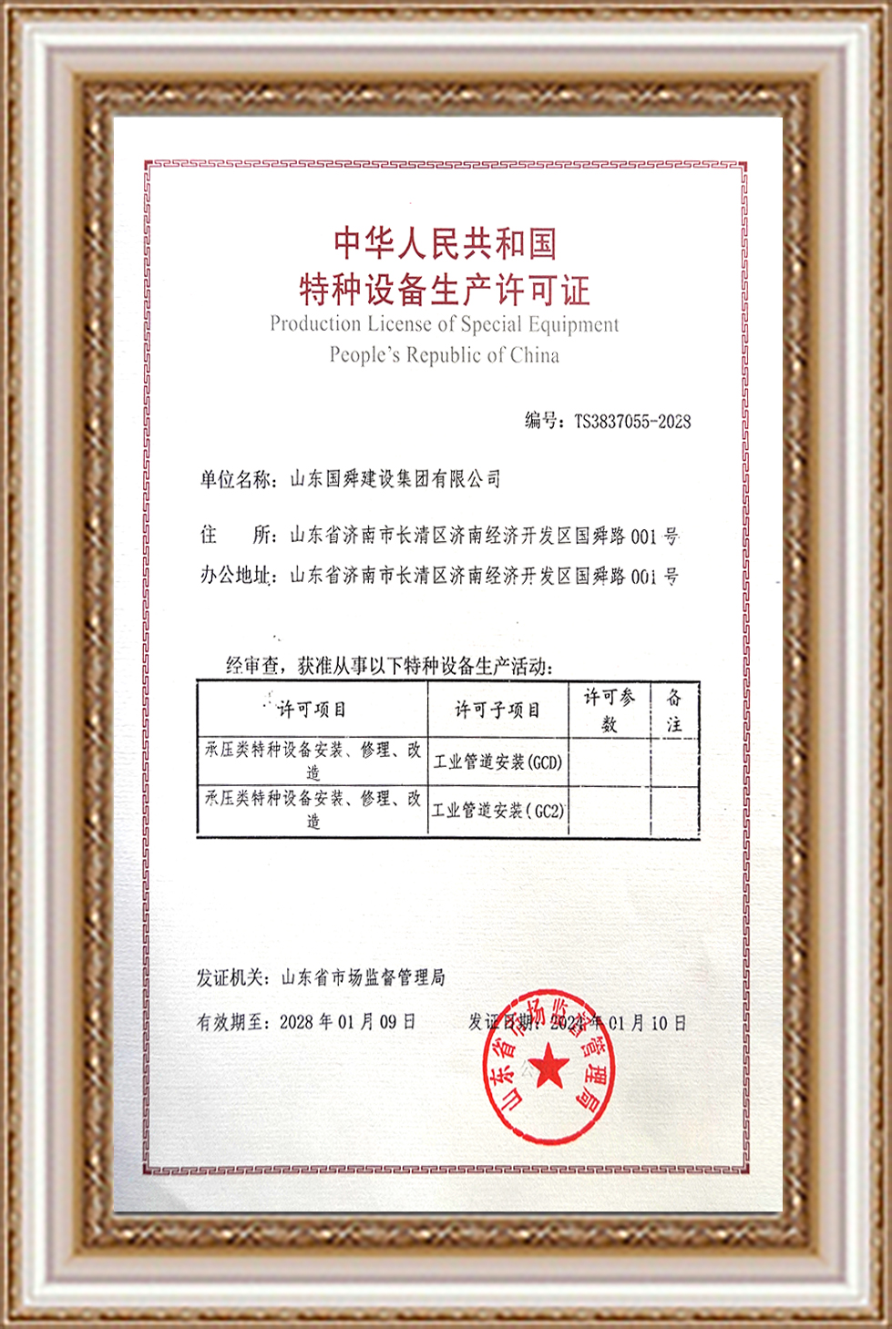 中华人民共和国特种设备生产许可证