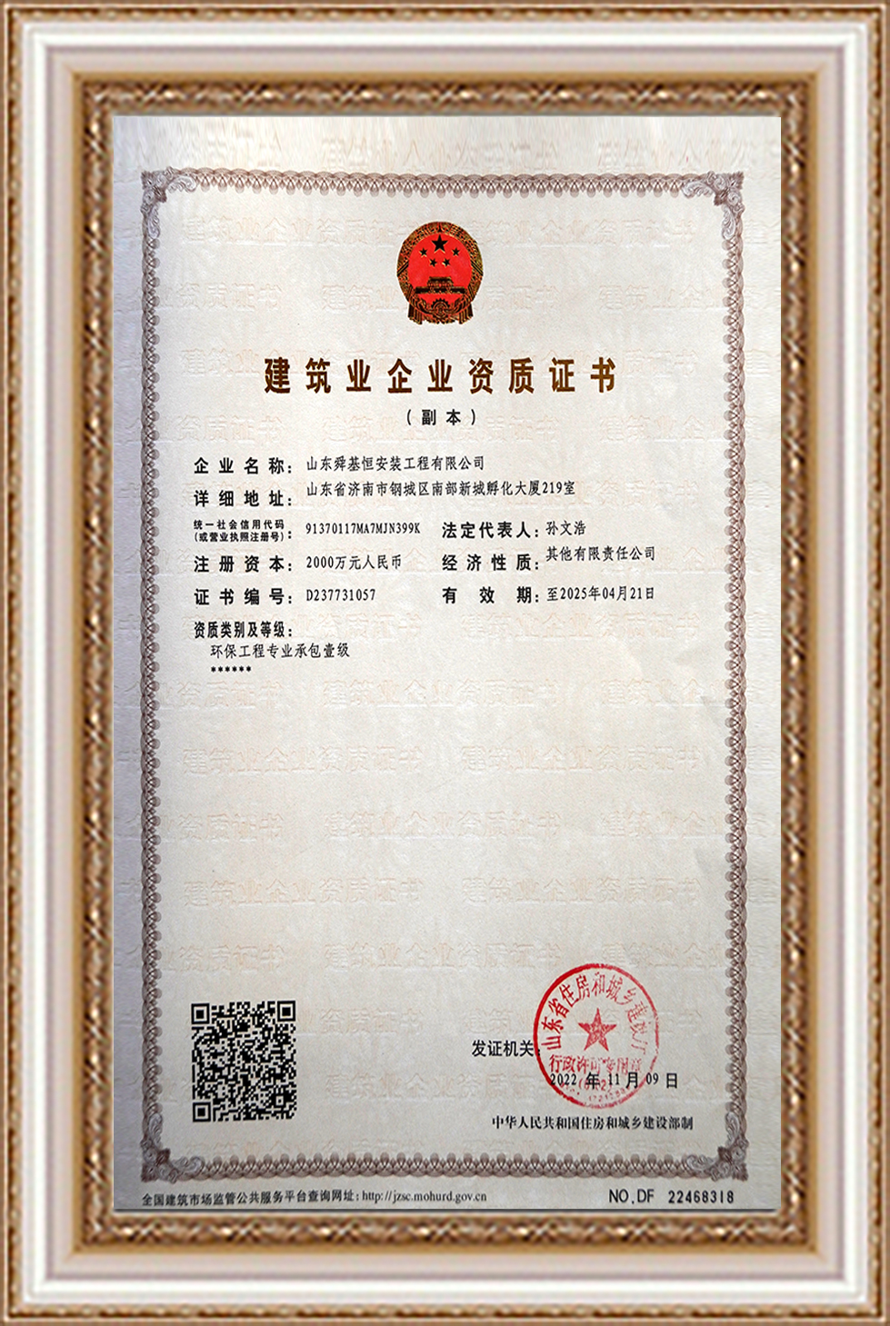 建筑业企业资质证书
