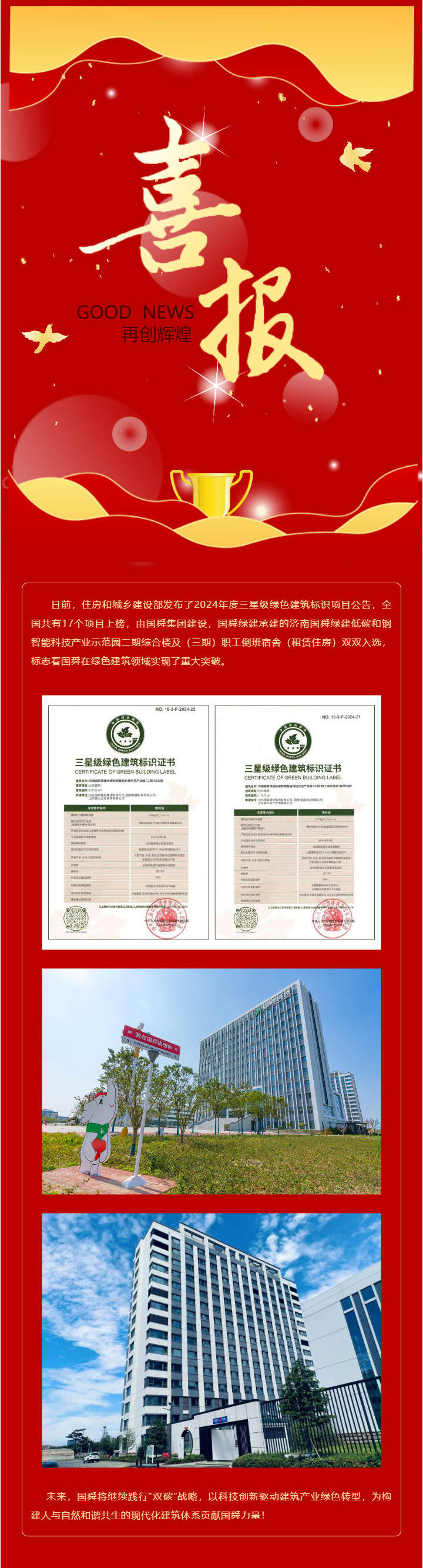 头条 | 国家级荣誉!国舜集团两大项目入选三星级绿色建筑标识项目!