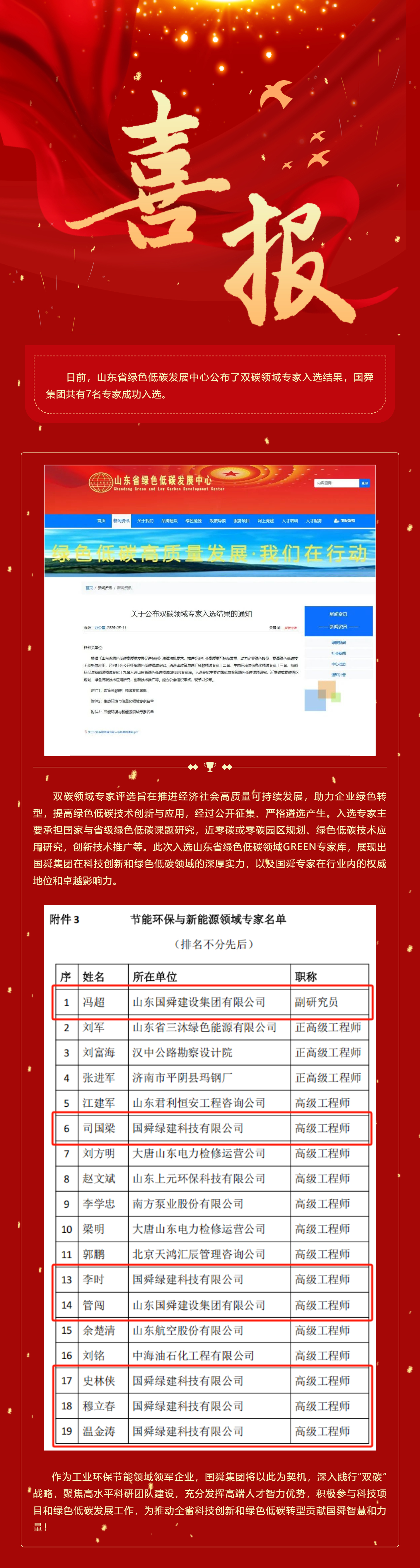 头条 | 喜报!国舜集团多名专家成功入选山东省绿色低碳领域GREEN专家库!