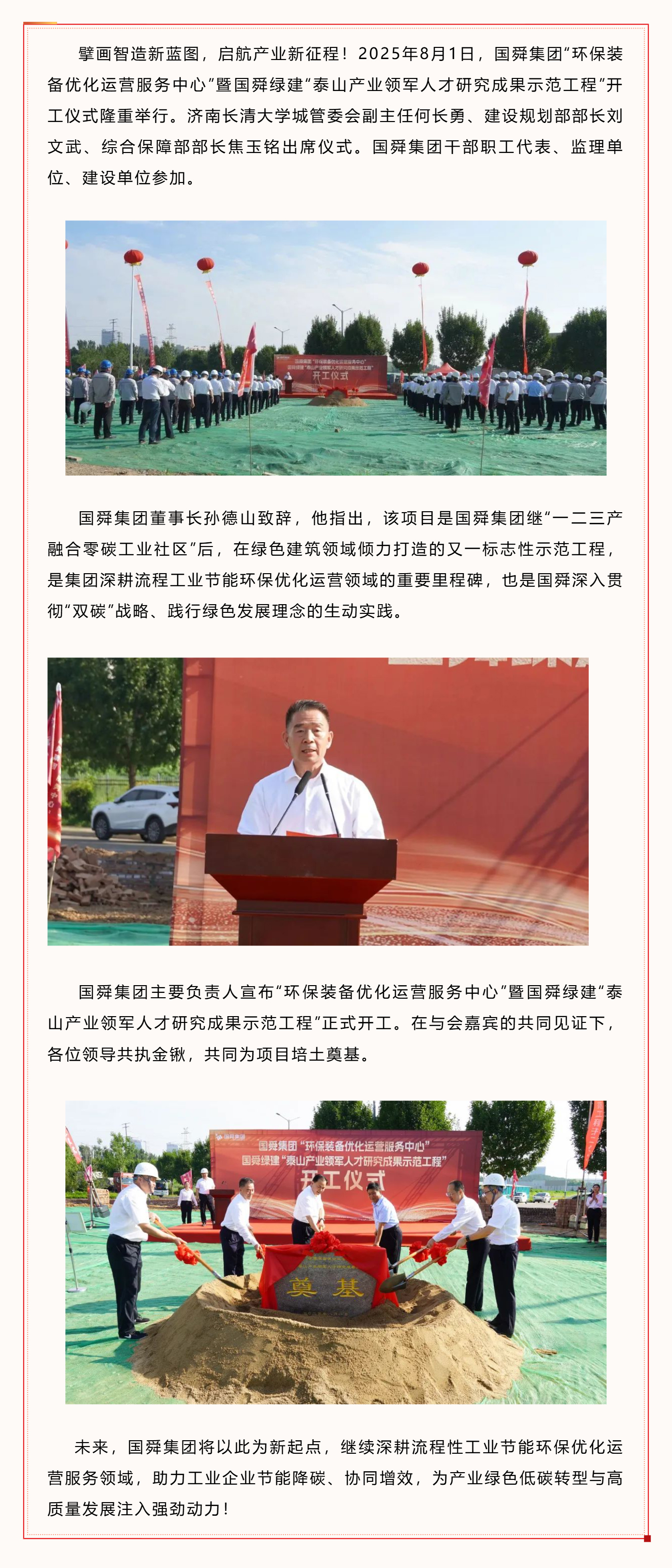 头条 | 夯基筑梦,擘画新程!国舜集团“环保装备优化运营服务中心”暨国舜绿建“泰山产业领军人才研究成果示范工程”正式开工!