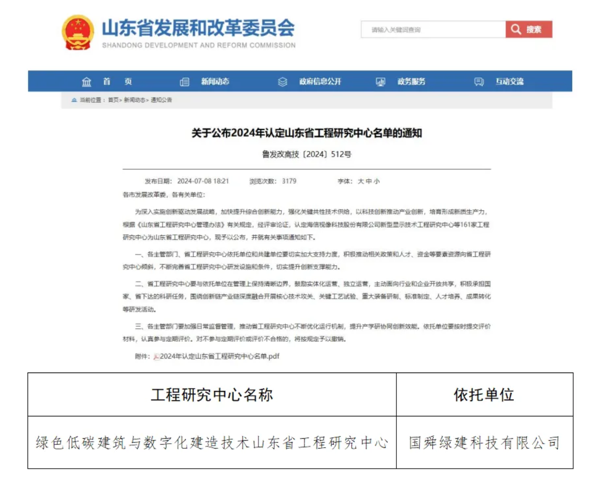 头条 | 喜报!国舜绿建科技有限公司成功获批“山东省工程研究中心 ”!