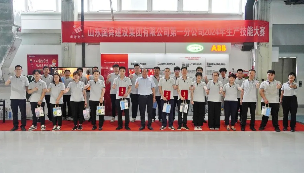 2024年6月11日,山东国舜建设集团有限公司第一分公司(以下简称“一分公司”)生产技能大赛在“一二三产融合零碳工业社区”电气生产车间隆重举行。一分公司总经理吕和兴、副总经理张坤玉、技术顾问石伟以及各部门负责人出席。
