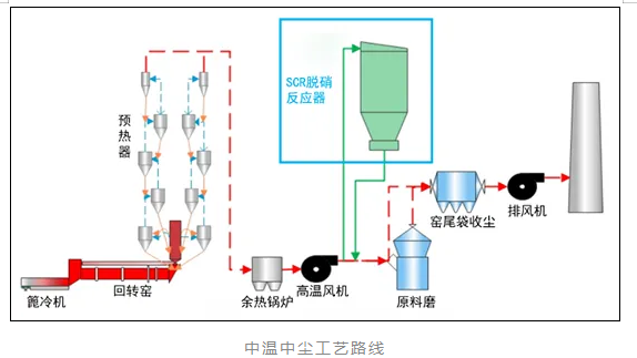 邢台建德水泥项目采用中温中尘工艺,项目日产熟料3000t/d,设计烟气量240000Nm³/h、烟气温度200℃、SCR入口NOX浓度300mg/Nm³,投运后排放指标NOX排放<30mg/Nm³、氨逃逸<5mg/Nm³、系统阻力<700Pa。