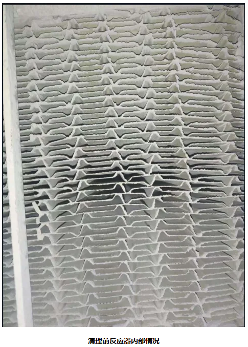 本次投运的两个项目,采用水泥窑专用的板式催化剂,具有抗堵塞、吹扫频率低、运行费用低的特点。以下为双良鼎新水泥SCR脱硝工程投运2个月时,清理前的板式催化剂内部照片。