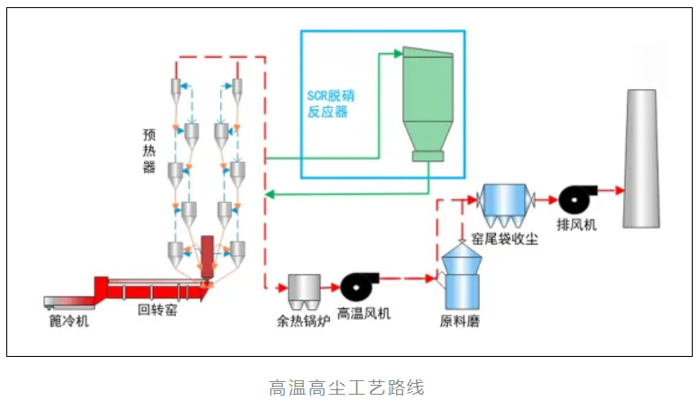 双良鼎新项目采用高温高尘工艺,项目日产熟料4000t/d,设计烟气量260000Nm³/h、温度300~350℃、SCR入口NOX浓度400mg/Nm³,投运后排放指标NOX排放浓度<50mg/Nm³、氨逃逸<5mg/Nm³、SCR系统总阻力<800Pa、温降<8℃。