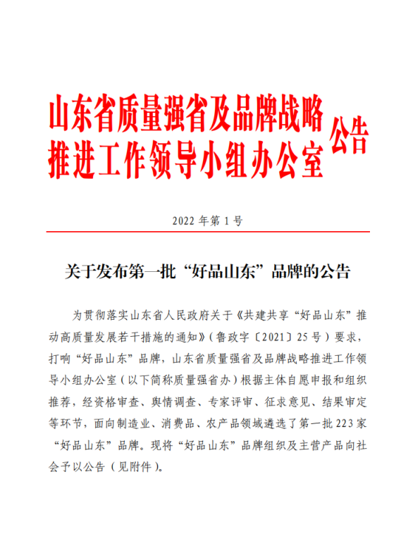 关于发布第一批“好品山东”品牌的公告